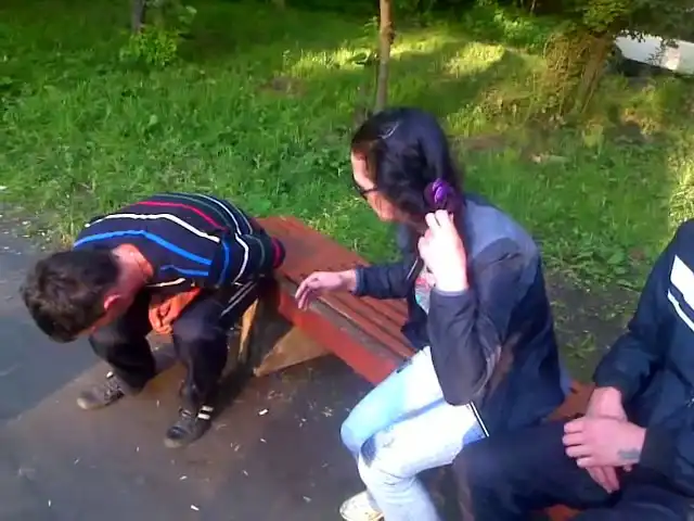 Девушка, сидящая на лавке в компании двух завидных женихов, не смотря на очень хорошую компанию, пытается время от времени убежать с низкого старта. Так же заметен эффект слоумоушена, хотя видео не замедляется... Господа, не принимайте наркотики!