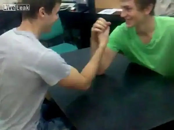Во время поединка армрестлеров, один из них получил травму, не совместимую с дальнейшим продолжением поединка.