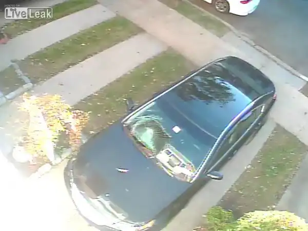 Кот, прыгнувший с окна, приземлился четко на лобовое стекло новенького автомобиля и ушёл прочь как ни в чем не бывало.