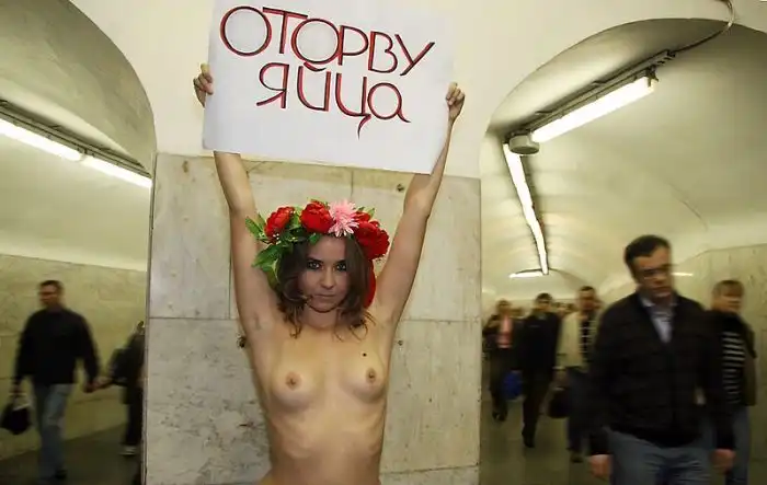 Украинские девушки решительно протестуют: они не проститутки, а их страна не бордель! Чтобы донести эту простую истину до иностранцев, школьницы и студентки выходят на улицы и раздают поучительные листовки. Все это проходит под патронажем организации Femen.