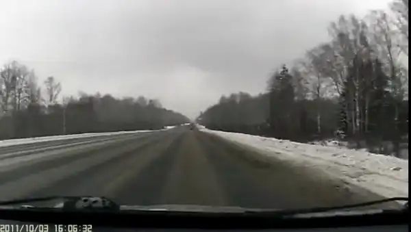 Ох и повезло же этому водителю автомобиля с видеорегистратором на трассе. Если бы еще всего несколько сантиметров, у этого видео было бы печальное завершение. Парень точно родился в рубашке!