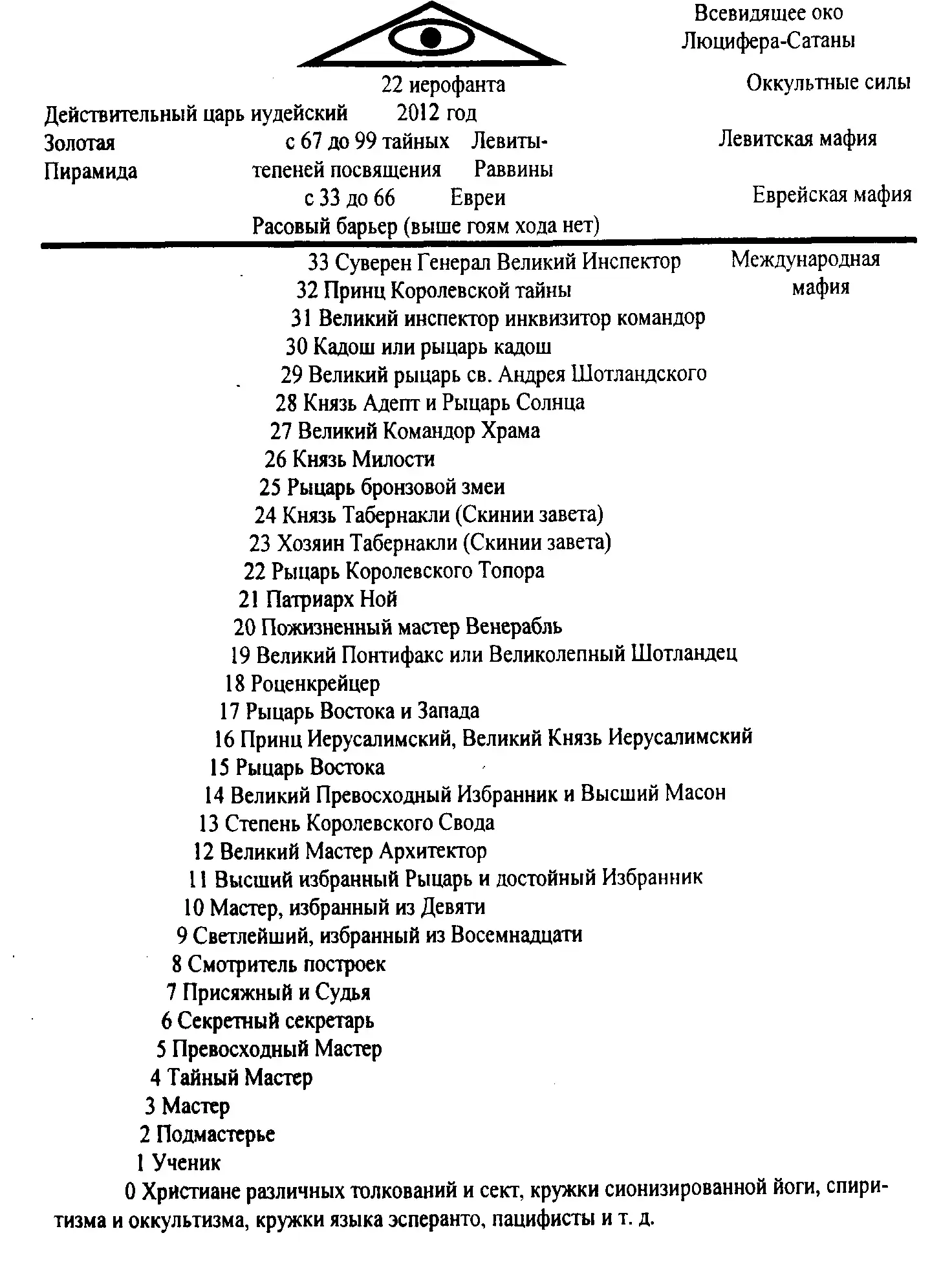 То есть нееврей может быть масоном от 1 до 33 градуса. Еврей - масоном от 1 до 66 градуса. Левит - от 1 до 132 градуса.