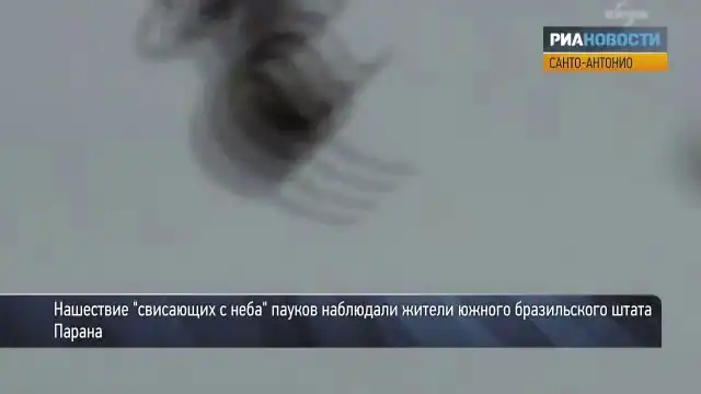 Нашествие пауков вызвало панику у жителей бразильского городка Санто-Антонио в южном штате Парана. Смотрите на видео кадры очевидца, который назвал происходящее «паучьим дождем».