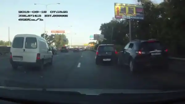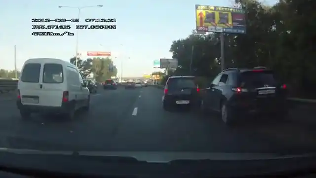 Как бы это не было банально, но таких водителей на дорогах нашей страны просто миллионы. Водитель Infiniti протаранил другой автомобиль, отправив его прямиком в отбойник, и спокойно покинул место аварии.