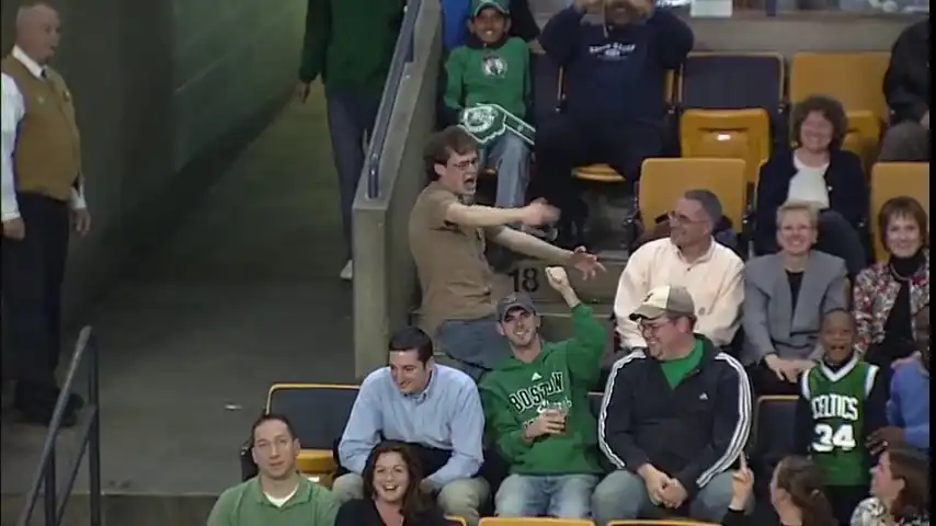 Представьте себе: баскетбольный матч NBA, в перерыве звучит легендарный хит Bon Jovi «Living on a Prayer», на первый взгляд ничем не примечательный паренек ловит момент, когда камера снимает его сектор, и дальше происходит...