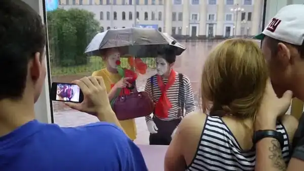 Веселые ребята появились в Томске. Пока шёл дождь они веселили людей прятавшихся от дождя в Сибирских блинах)