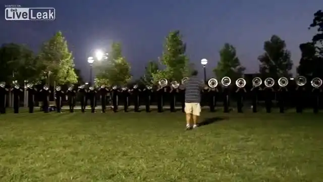 Необычный духовой оркестр с помощью дирижера воспроизводит красивые и неповторимые звуки
