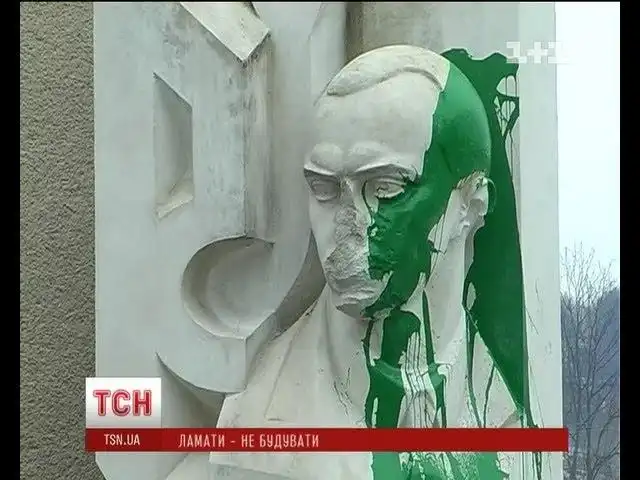 Какие-то вандалы надругались над величайшим творением украинской архетиктуры, над памятником Степану Бандере! Слава Украине! Героям Слава! :comforttroll:
