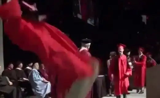 Дэвенпорт, студент университета Роберт Джеффри Бланк пытался сделать сальто во время выпускной церемонии в Ван Андел Арена в Гранд-Рапидс, штат Мичиган.