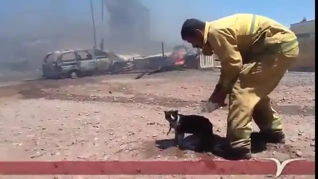 Во время серьезного пожара мексиканским пожарным удалось спасти кота. Бедолага почти не пострадал, только кое-где шерсть обгорела, зато жив.