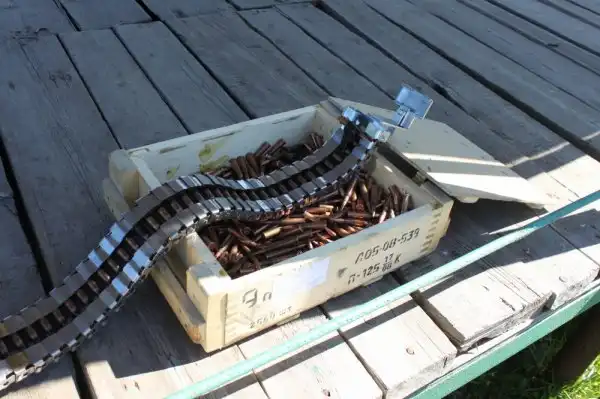 2) Лента идет звеньями по 25 патронов (тащиться по земле не будет)