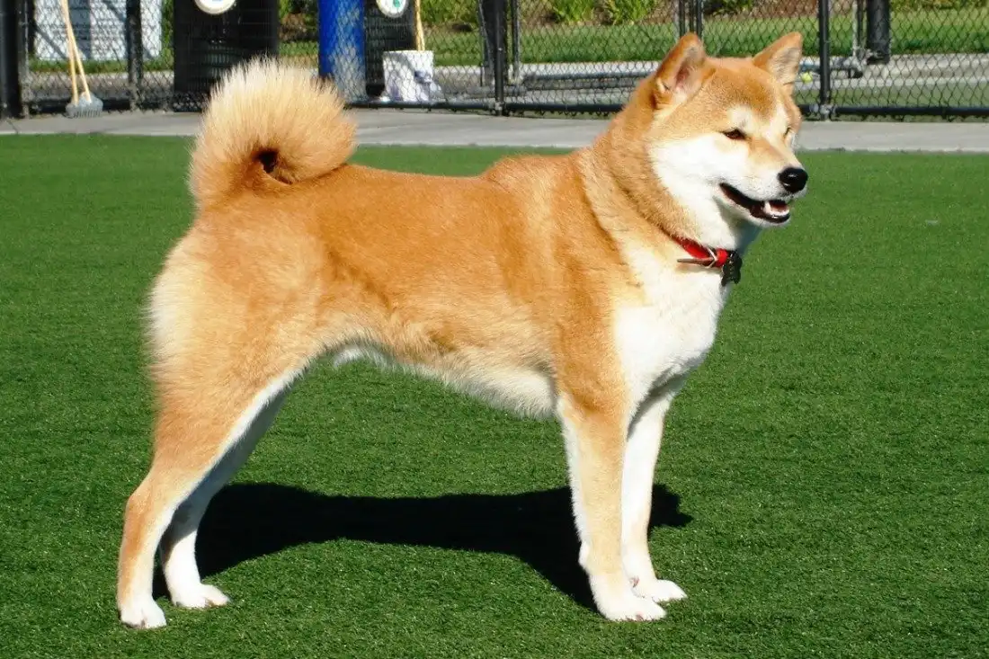 Шиба ину имеют рост порядка 35—41 см, а вес около 8—10 кг. Это небольшая хорошо сложенная собака с сильными мышцами. Ее голова напоминает лисью. Широкий череп с четко выраженным переходом от лба к морде. К мочке носа морда сужается.