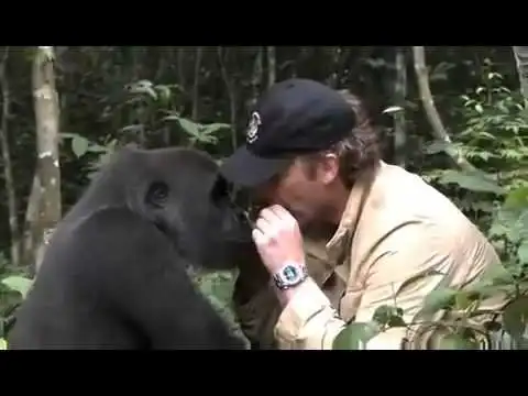 Англичанин вырастил детеныша гориллы, а потом отпустил его на волю. Спустя 5 лет он решил его проведать, а заодно посмотреть, узнает ли тот его. Выращенный питомец не только откликнулся на голос своего приемного родителя и выбрался на берег реки, чтобы поздороваться, но потом даже не захотел его отпускать!