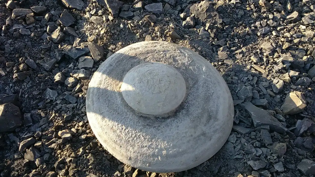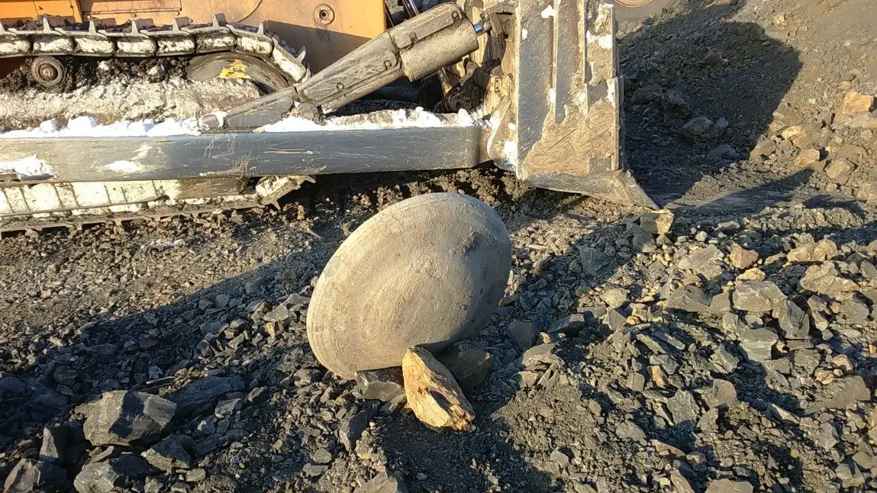 Найденный диск, по словам горнорабочего, был не единственным. Аналогичный объект пострадал от удара ковшом экскаватора.