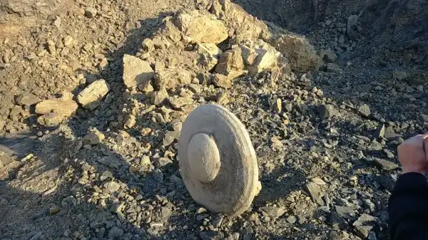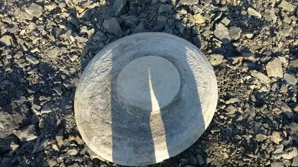 Артефакт круглой формы, что касается материала, то это, скорее всего – аргиллит. В диаметре каменная глыба - 1,2 м, ее вес составляет около 200 кг.