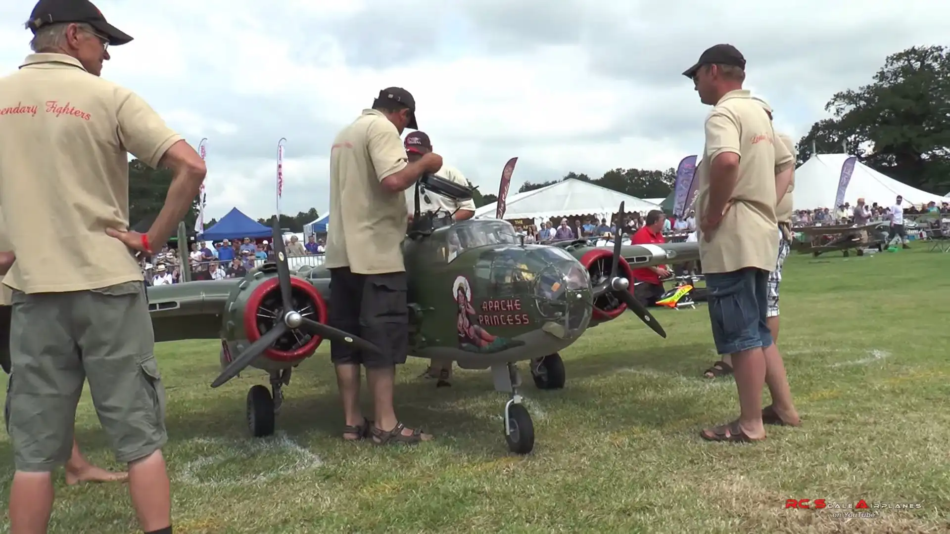 Впечатляющий полёт радиоуправляемых моделей легендарного B-25 «"Apache Princess» и двух Messerschmitt Bf.109 на авиашоу в Великобритании.
