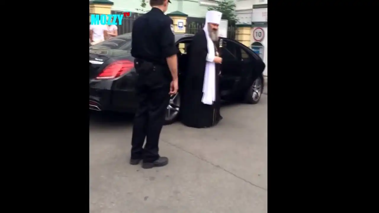Московский поп на мерседесе в Киеве послал полицию на юх такси гонять
