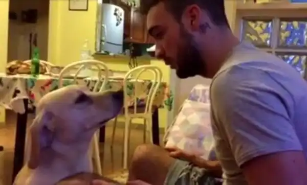 Эта провинившаяся собака точно знает, как получить прощение у хозяина.