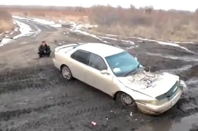 Житель Приморья отправил свою машину на списание, вклинившись в колонну самоходных минометов "Тюльпан".ДТП произошло в минувшее воскресенье, 14 марта, возле поселка Сергеевка в Пограничном районе края. Колонна военной техники следовала на полигон, однако на разбитой дороге скорость передвижения была невелика. Это обстоятельство, очевидно, и навело местного жителя на мысль, что он успеет проскочить между двумя машинами на своей Toyota Camry. Дальнейшие события показали, что мужчина явно ошибся в расчетах.