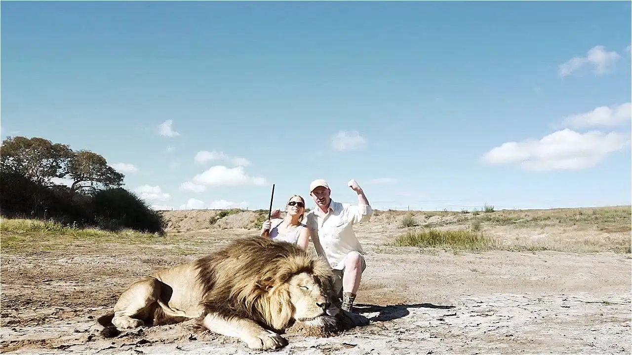 Двое охотников, мужчина и женщина, настроили видеокамеру для того, чтобы сфотографироваться рядом с телом убитого ими льва. Однако именно в этот момент на горизонте появился еще один лев и напал на браконьеров.