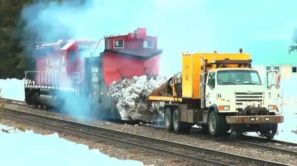 Грузовики, фуры, автомобили адаптированные для езды по рельсам в одиночку и в качестве локомотива! Урал, Краз, трактор, джип, фура, грузовик, автомомбиль вместо поезда не рельсах. Ремонт и уборка железнодорожного полотна, снегоуборочный поезд. США, Украина, Россия
