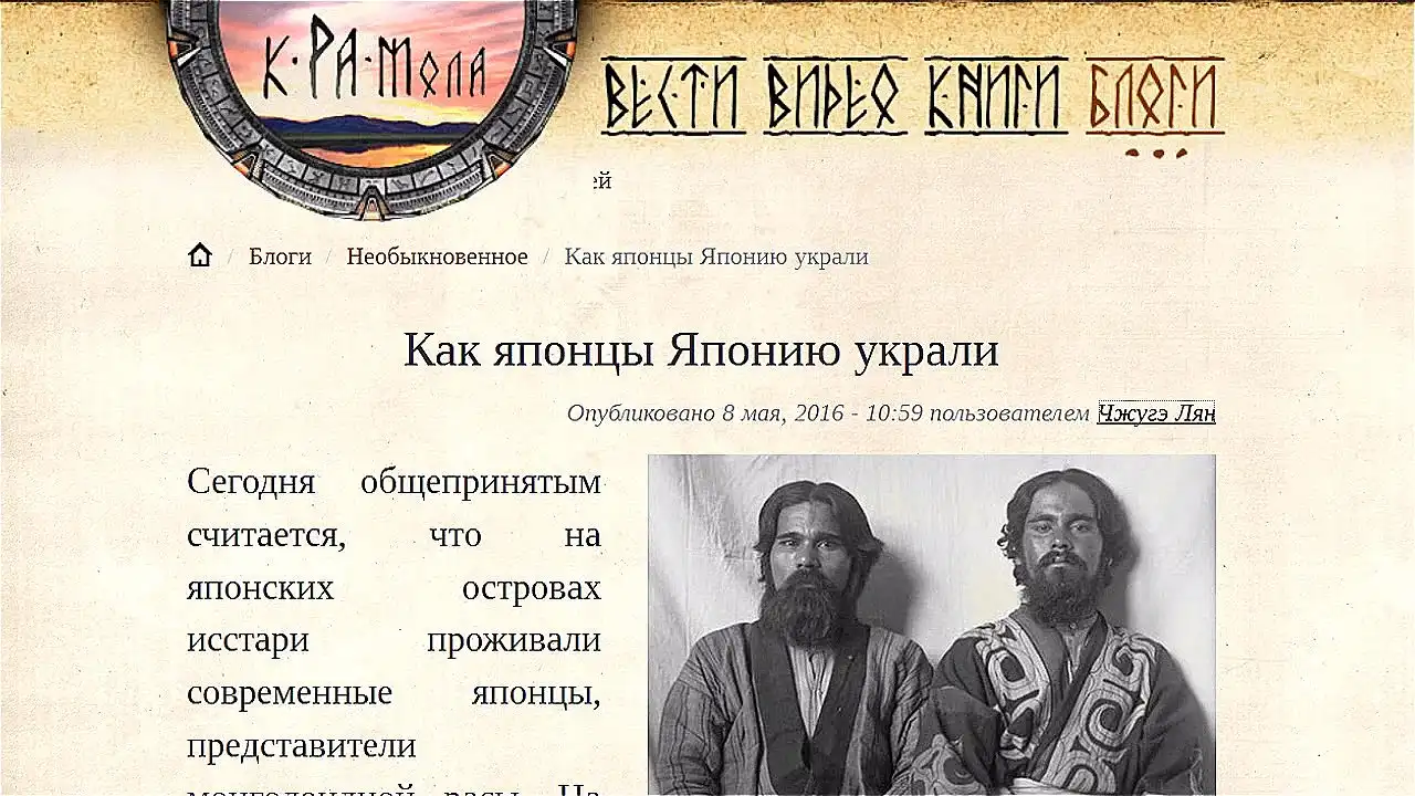 В пылу непрекращающегося спора между Россией и Японией за право обладания Курильскими островами как-то забывается, что истинными хозяевами этих земель являются айны. Немногие знают, что этот загадочный народ создал одну из самых древних в нашем мире культур. Как утверждают некоторые ученые, культура айнов древнее египетской. Среднему обывателю известно, что айны являются притесняемым меньшинством Японии. Но мало кому известно, что айны есть и в России, где они также не чувствуют себя уютно. Кто такие айны, что это за народ? В чем их отличие от других народов, кому они родственны на этой Земле по происхождению, культуре и языку.