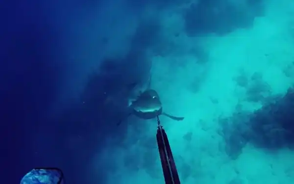 Красивейшая атака дайвера тупорылой (бычьей) акулой.