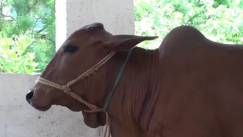 Kids drinking fresh milk from Indian cow breast . Дети пили свежее молоко из груди индийской коровы