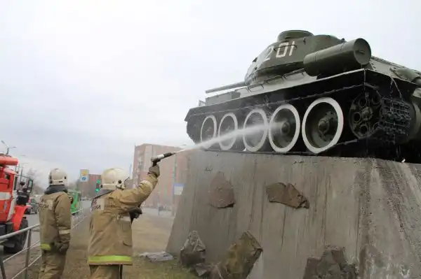 Мощный направленный поток воды очищает любые загрязнения и ржавчину. Очистка металлических труб, огромных цистерн, кузов грузовика, танков и многого другого. Рабочие работают в специальной одежде (очках и костюме) для безопасности. Пескоструй, керхер, отпариватель и т.п.