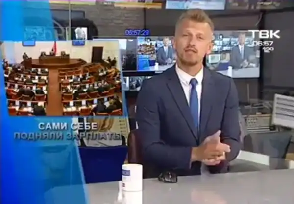 Это Александр Смол, ведущий программы "Новое утро" на каком-то региональном телеканале в Красноярском крае. Эмоциональная и красивая импровизация в прямом эфире по поводу повышения зарплат депутатом Красноярского законодательного собрания.
