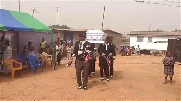 В Гане семьи все чаще обращаются к группам танцоров, чтобы отправить своих близких в последний путь с зажигательными плясками. Танцоры с гробом на плечах заметно поднимают настроение скорбящих, устраивая из похорон шоу.