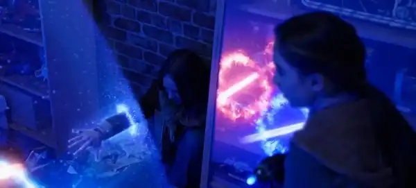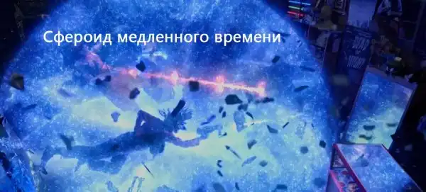 Одна из героинь фильма использует "временную бомбу", которая "замораживает" время. Я добавил свои комментарии, чтобы показать более подробно, что видно на этих кадрах.