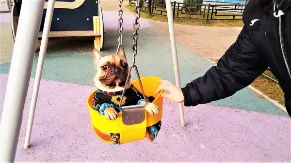 который не против покататься на качелях и мопс, который не в силах бороться со сном, но он пытается, ведь он сильный мужчинка.