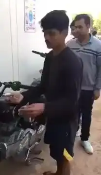 Воришка показывает полицейским, как он заводит угоняемые мотоциклы.