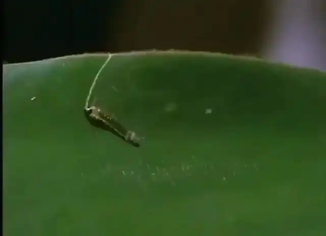 Гусеница знает, что она лёгкая добыча для хищников, именно поэтому, найдя для себя источник пищи, она сначала строит укрытие для себя, и только после этого спокойно приступает к обеду.