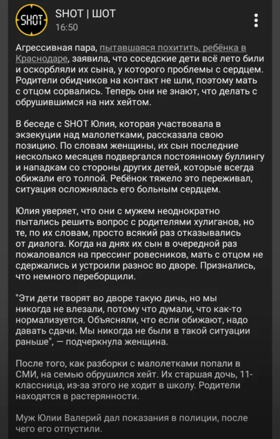 Однако это им показалось недостаточным, и они пошли дальше — попытались похитить одного из детей, угрожая сломать ему руки и ноги.