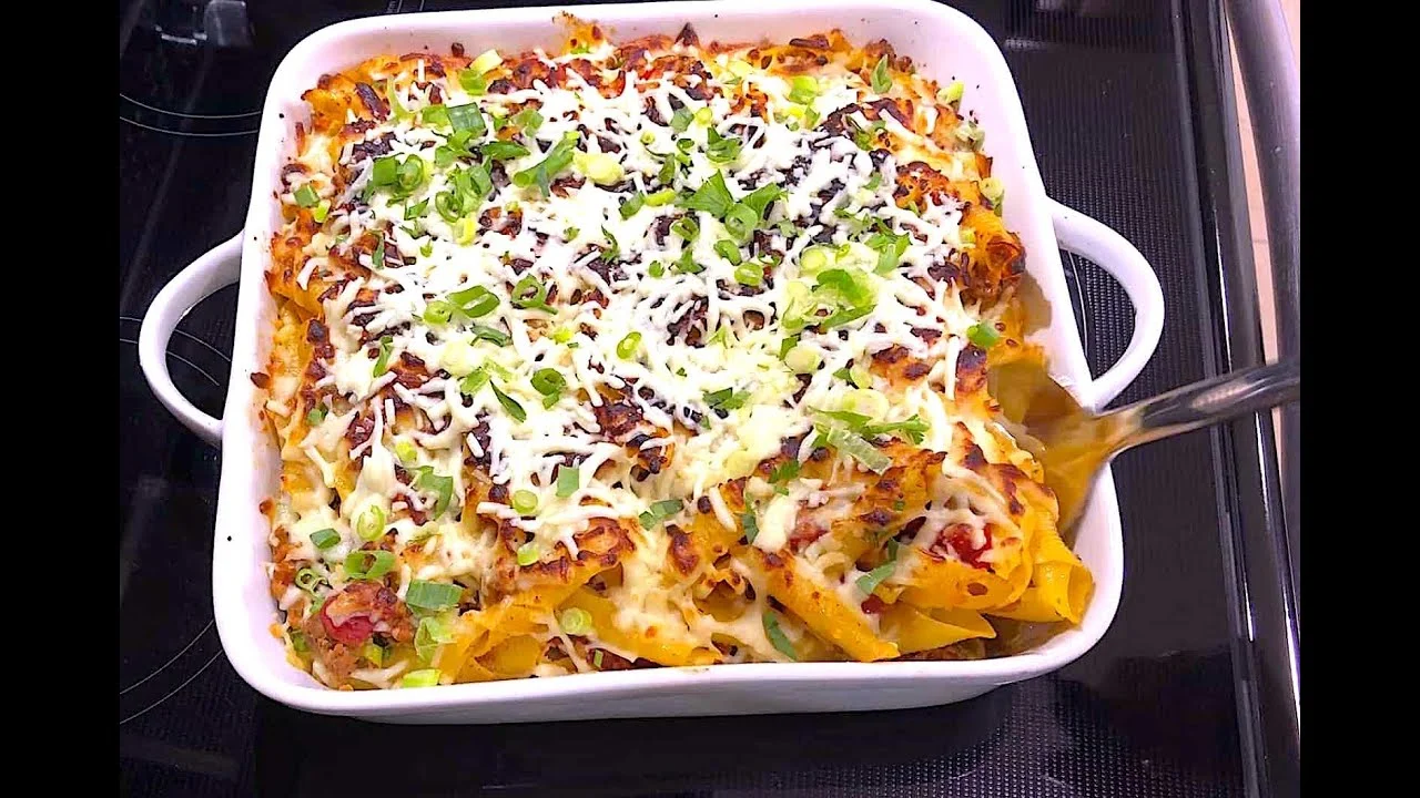600 г фарш индейка говядина + 50 мл воды 300 г паста отварить альденте + 1/2 ч/л соли 2-3 ст/л растительное масло 1 лук репчатый 1 морковь 100 г перец болгарский 1 ст/л томатной пасты + 120 мл воды 400 г помидоры в собственном соку или 2-3 свежих помидора соль, итальянские травы, паприка, чили, перец черный молотый 1/2 стакана зеленый лук 120 г сыр моцарелла или другой запекать 10-12 мин 200С>