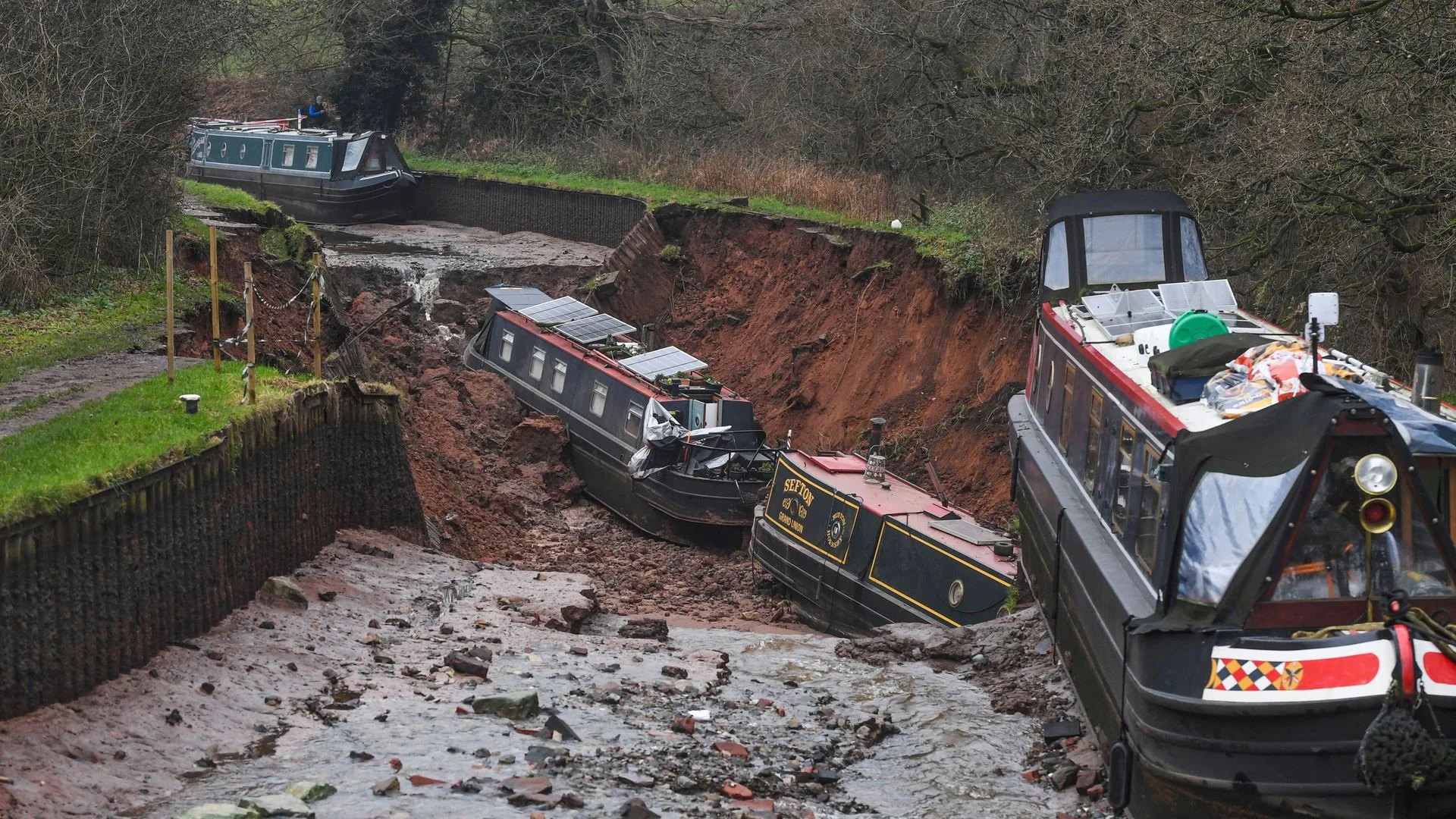 В Англии прорвало местный судоходный канал, лодки сели на мель