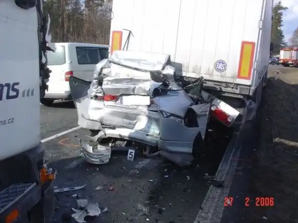 DOMOWOl, при чём тут скорость? Легковушка под фуру залетела, а вторая фура её сзади припечатала.