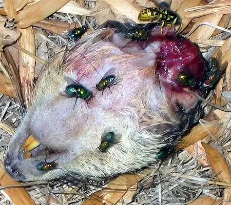 кошку отогнали от трупика, чтоб сфотать неужели не понятно)