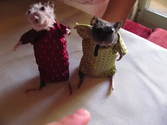 Мышки видать не боялись.Ели с рук,ползали по ней,строили домики...