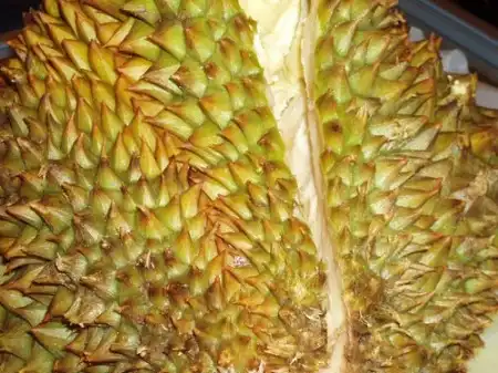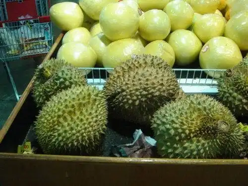 Вонючий фрукт дуриан. Воняет реально что говорится "от души". Попытки разрезать были восприняты принимающей стороной крайне негативно, и по здравому обсуждению отвергнуты. Тем более, что когда я попытался фрукт взять в руки, девушка из овощного отдела куда-то в панике убежала.