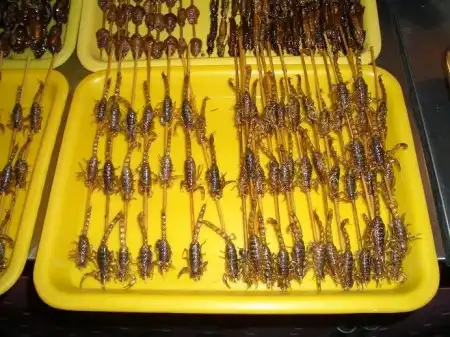 Выбор пищи для дружеско-делового ужина. В соседнем бачке сидели и шевелили хелицерами или чем там они шевелят, скорпионы, но мигом притихли, когда поняли, что готовится серьезный прием пищи продвинутыми в этом деле гражданами.