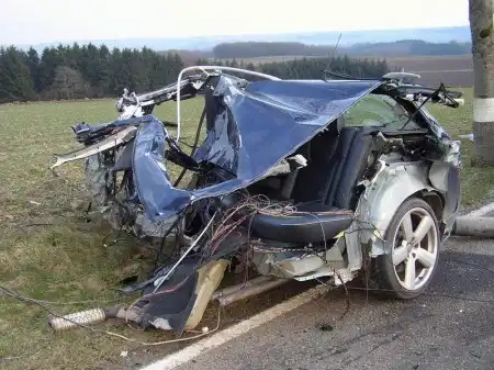 Эта куча железа - последствия сильной аварии. Что самое интересное - водитель ауди отделался только мокрыми от страха штанами!. Ни ушибов, ни ссадин. Везет людям.