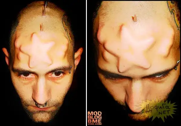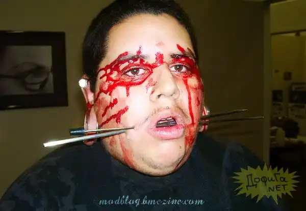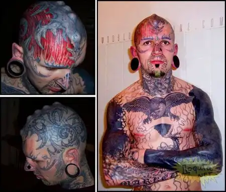 ну по-моему это перебор..... ну маленькую татушку можно сделать.... ну ладно 1-2 пирсинга.... но не до такой же степени издеваться над своим телом... оно спасибо не скажет cry
