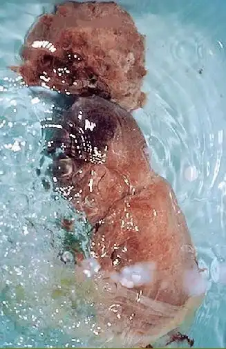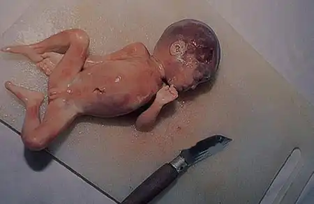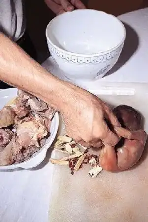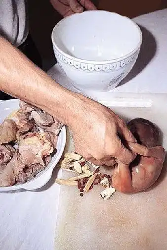 После того, как младенец мертв, повар делает небольшой разрез, чтобы спустить кровь.