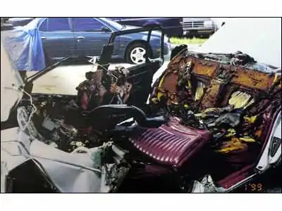 Машина, в которой ехала Жаклин. В нее врезалась другая машина, за рулем которой находился 17-летний студент, ехавший домой после того, как он выпил со своими друзьями приличное количество пива. Это произошло в декабре 1999г.