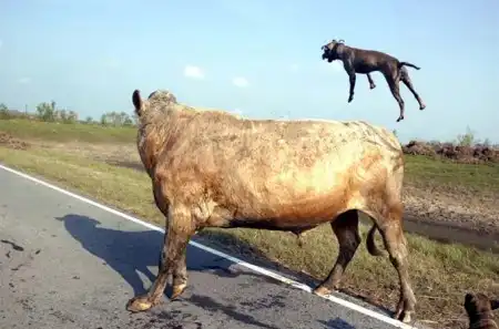 Всем жалко собачку... А то, что эта собака вцепилась быку в самое больное место... Никто не пожалел "бедную коровку". А собака, если оклемается, в следующий раз будет знать, как бросаться на того, кто крупнее тебя в несколько раз.