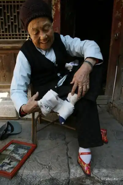 конечно я слышаоа про маленький размер ноги в странах востока и что их заставляют носить подобную обувь,но не до такого же бреда доходить!маленькой девочке резать стопу,заворачивать!я бы быстро иммигрировала от туда куда подальше!!!