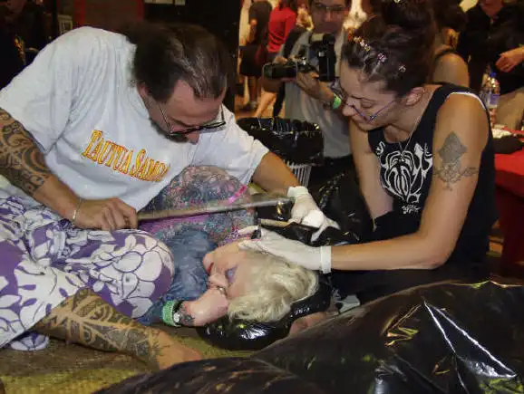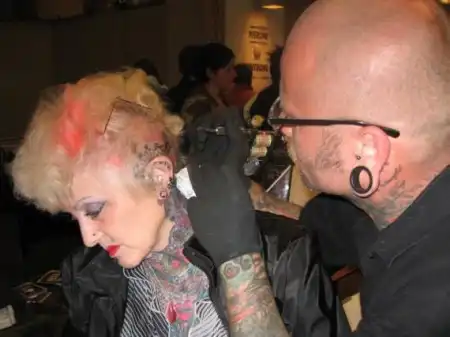 Ха ха куи на лбу, бабку наверно с татуировщикомибется)))